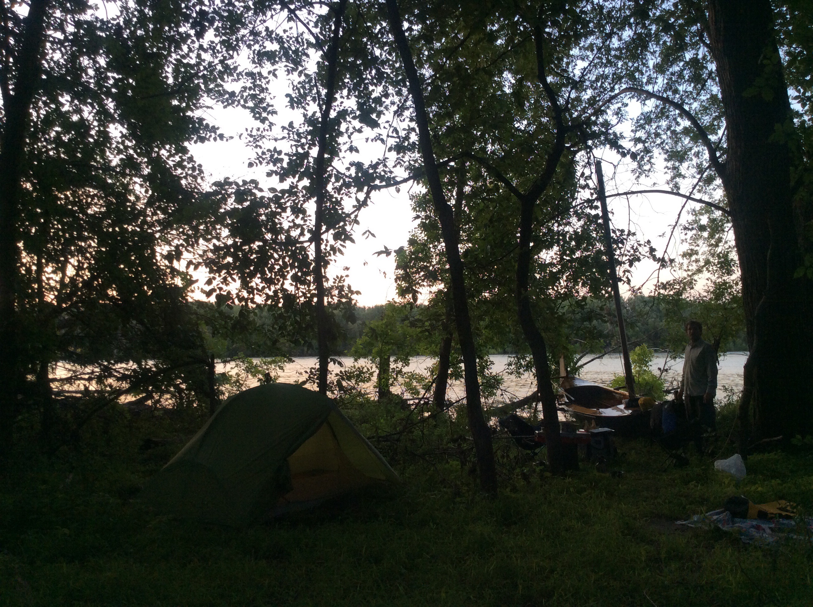 The trip up until this point has been a lot of rowing, which out of necessity means a lot of shorter days easing into the physical demand of such a sport. While we have had a few days of rain, we’ve generally had good weather and the days on the water have been really enjoyable. It’s a nice feeling of beginning, of freedom. The realization of a lot of hard work. Camping has turned out to be very rugged, I am thankful for our backpacking trips to teach me the ropes as it were. It’s been really rewarding to see ideas that came from my head to the notebook, from the notebook to the shop, actually function as intended and be successful. I also didn’t realize how much I had missed the quiet- there’s not sirens every two minutes going by, the noise of a 100 cars an hour crossing the bridge. Instead we listen to beavers smacking their tail as they dive, cranky herons screeching as they take off. It’s been really nice.**