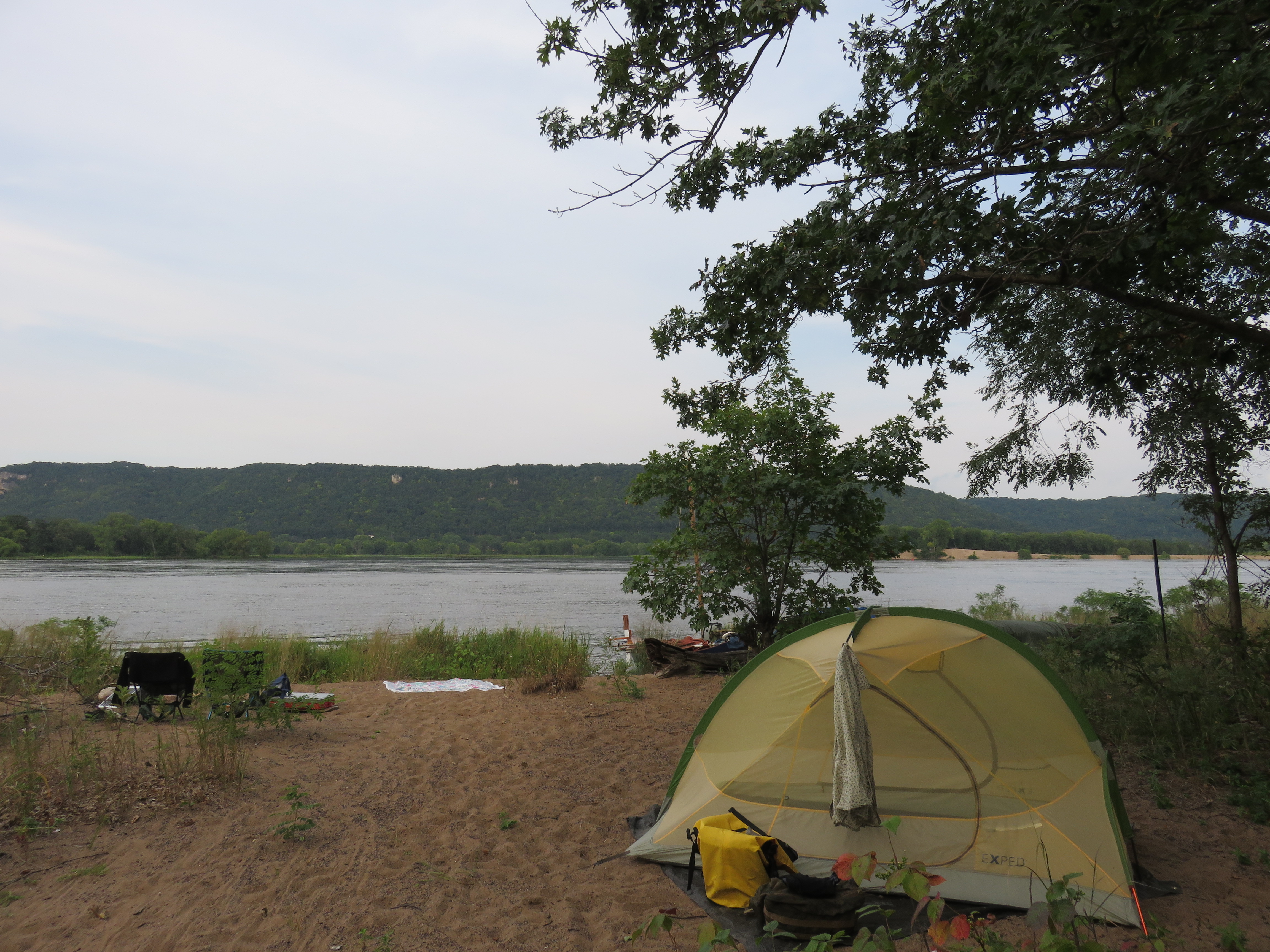 I highly recommend playing/camping on McMillan Island, just before lock 10. It’s a sand island made by the U.S. Army Corps of Engineers. It’s made from the sand that gets dredged up from the main channel. Sometimes they’ll pipe the sand away to build wing dams, and then the island looks like a sand doughnut, with a pond in the middle. But most of the time it’s a huge hill of sand, ready for jumping and sliding!