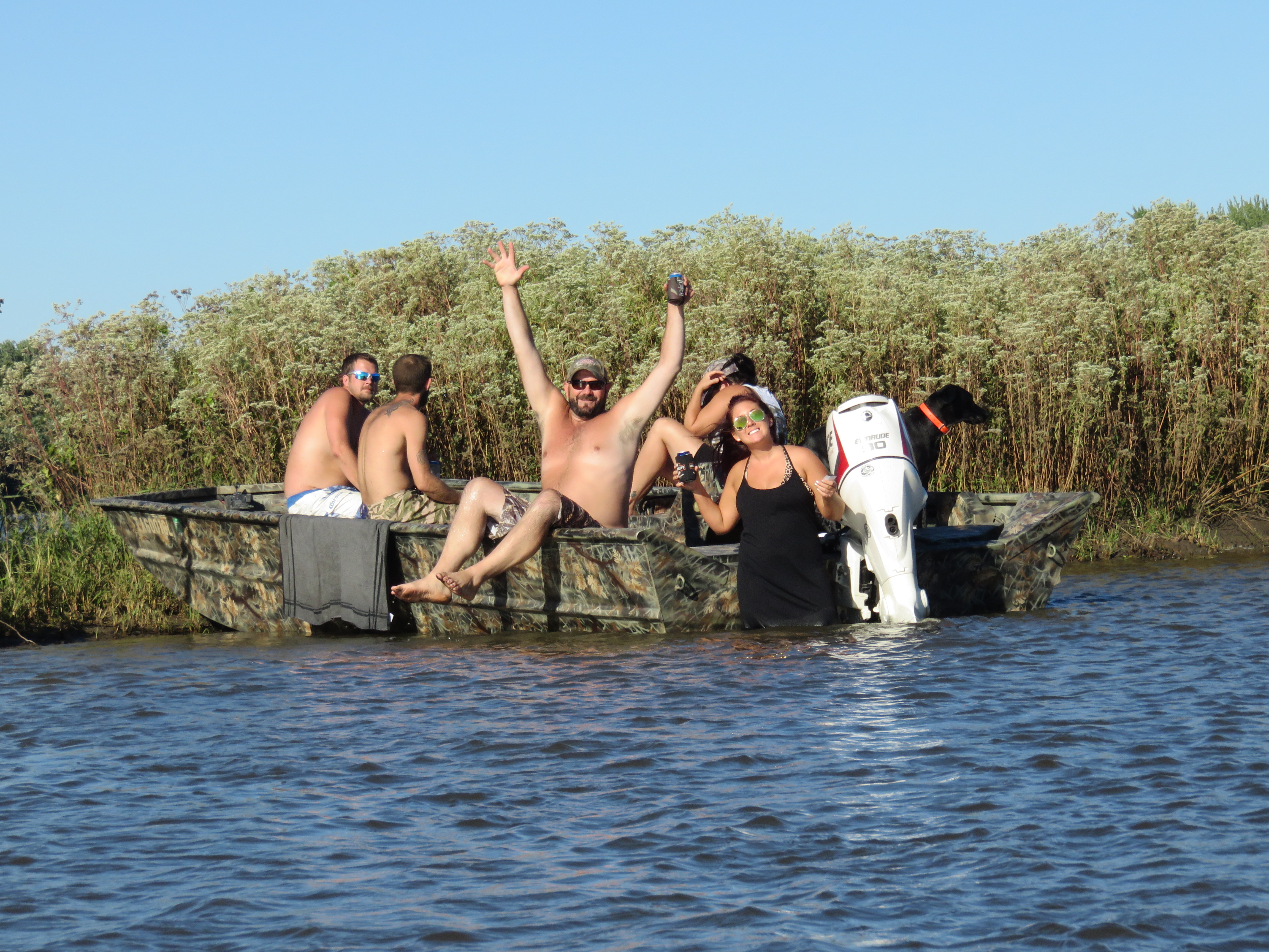 Wow well I am still quite speechless from yesterday. Not only did we make 30 miles, 21 of which were under sail, and the 9 under oar were actually quite fun because we were cruising along so fast, but we also received the most amazing river magic. It all started when we dropped the sail due to lack of wind. A red power boat pulled up and asked some questions about our journey. They then suggested a beach 5 miles down river for camping and said we might run into them there later in the evening. With a sandy beach as motivation we continued rowing. We rounded a corner when a group of people in a run about called us over. We rowed over and were greeted by really kind folks who provided laughter, local information, quite a few cold drinks to take with us, and a nice little break from our day. Cassie and her friends and family from Bluegrass, Iowa- your kindness will not be forgotten. The smiles and fun you provided were a huge moral booster and something we will remember as we venture onward. Thank you!! After saying our goodbyes and taking some photos we left the slough and headed for the main channel to find the beach that had been suggested.