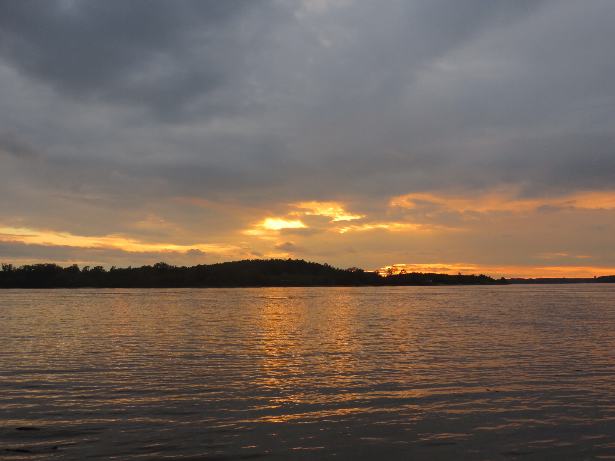 Last night we found an interesting beach to camp on. We pulled up on a sandy spot and before pulling Solvi up on her rollers or setting up camp, we went to explore the strange island. Our chart book called it island 14, and island 14 was completely covered in driftwood, sticks, and sharp stumps that were only an inch in diameter and about an inch sticking out of the sand. Being careful to avoid the potential puncture wounds from the tiny stumps, we ventured along the shore. Amidst the thousands of pieces of floatsom and driftwood here is what we found: 3 soccer balls, 1 plastic golf ball, a dozen cooler lids, at least 50 plastic bottles, 4 different shoes, a play dough dispenser, 3 milk crates, what looked like the back of a T.V., a couple 50 gallon plastic barrels, and a plethora of random pieces of styrofoam and plastic. Kyle found two tall sticks and using chunks of wood and rope he created stilts, which he successfully took 2 steps on. I, on the other hand, took a total of 0 steps before falling off 🙂 We cooked rice and beans over the fire and watched the sky break out into an array of pastel colors as the sun went behind the clouds.
