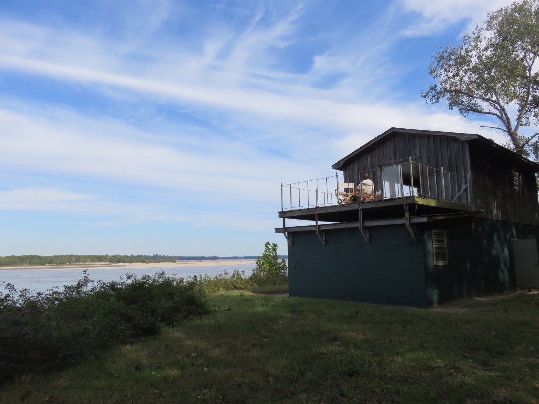 Today, on the other hand, is a completely difference experience. We awoke to no wind and blue cloud covered skies. Both of us were actually looking forward to rowing since we could take turns and not be fighting the wind. I took first shift and found myself rowing us at a consistent 6 knots. It hadn’t been 30 minutes when Kyle and I spotted the cutest little cabin on the river’s edge. This intrigued us because we hardly ever see any houses along the shore, especially just one on its own. We were checking it out when I heard someone shouting, unable to see him, but I made out the words, “Do y’all want to stop and visit for a bit?” Two minutes later we were approaching a sandy spot just below the cabin as a gentleman came walking down the hill. Mickey was his name, and what a nice man he was. He has been retired for 20 years and lives in Cleveland, Mississippi. Each morning he comes to his cabin on the river and reads and eats his lunch. Mickey showed us around the cabin and then asked if we wanted to sit on his deck and eat lunch together. I packed Kyle and I a quick lunch and we headed to his patio. What a fantastic visit and afternoon it was! He shared stories, asked questions, and Kyle and I did the same. We stayed for a couple hours before continuing on, but it was an impactful couple of hour. The fact that this man saw us from a far and asked if we anted to “visit” for a while is amazing. How often do you have a complete stranger ask if you want to sit down and do nothing but talk? Or let me ask that a different way, how often do you ask strangers if they want to visit? And how different would the world be if we did things like that more often? We, as humans, are all so uniquely different, we carry such different stories and experiences, but at the same time we are all similar. We enjoy companionship, conversation, and learning- so why not find that enjoyment in the people around you? We surround ourselves with our friends and family and people we have grown to trust and love, this is wonderful and shouldn’t change, but what if we expanded our circles? What if our circles began to intertwine and we shared our stories? I feel strongly that our worlds would begin to change and grow if we could learn to embrace the people around us, even if they aren’t in our circle. Anyway, my point is that he reached his hand out, and we grabbed it. And because of us being open to one another, Kyle and I have a new friend and Mickey has two new friends. It’s a marvelous life and I am thankful to have shared two hours of it with Mickey and Kyle on a small patio in a cozy cabin overlooking the river valley below. Thank you Mickey!