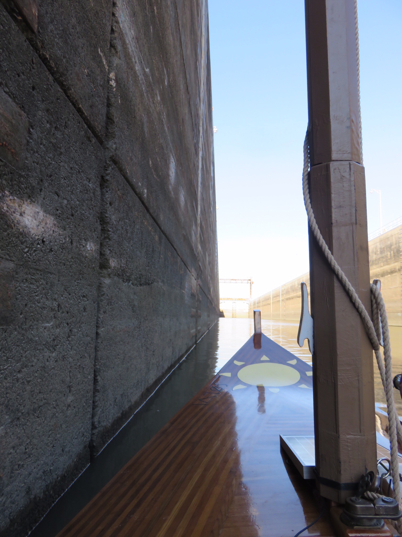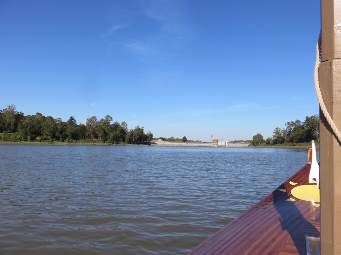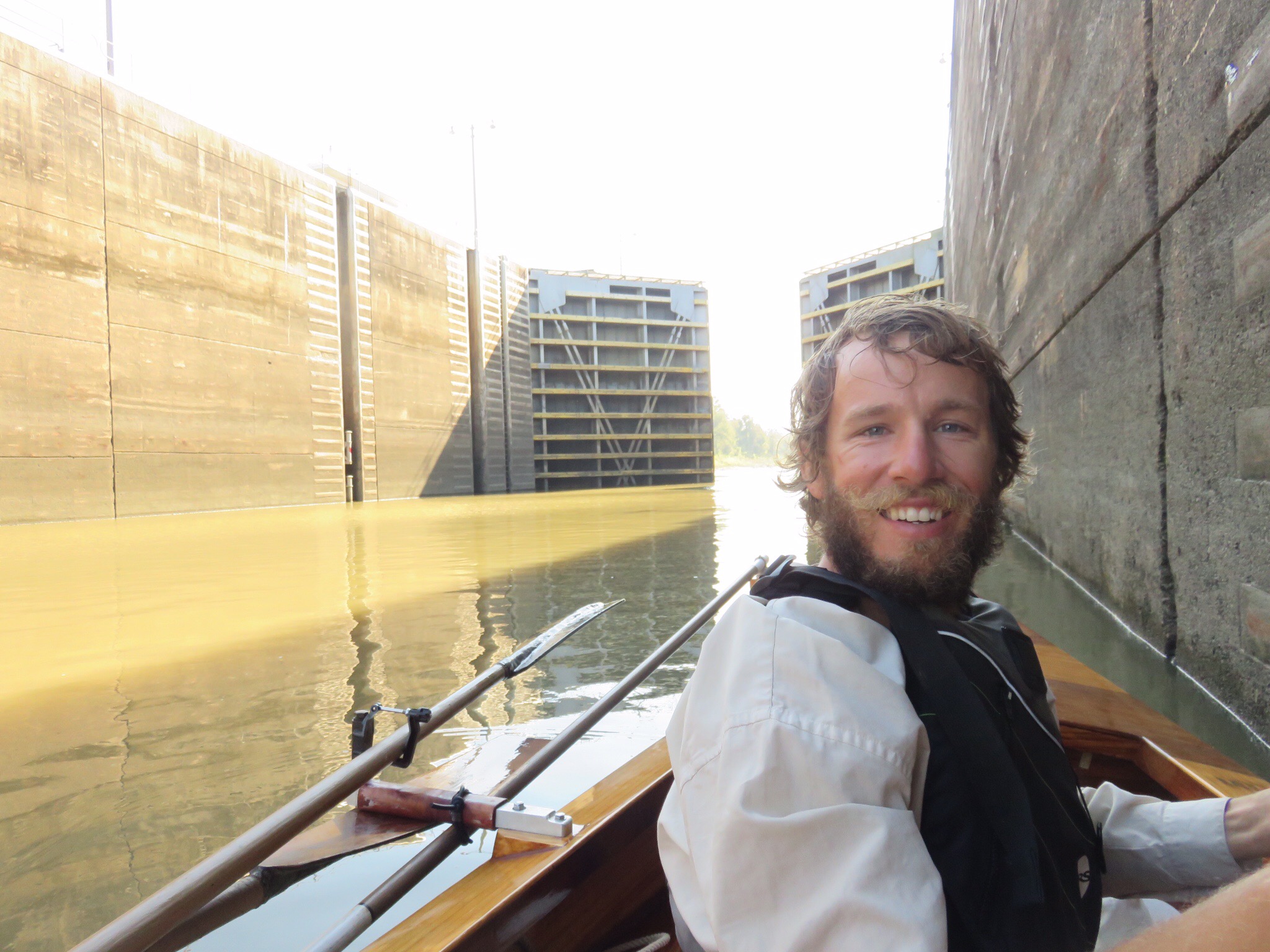 Yesterday morning around 10am Kyle and I rowed from the Mississippi, took a sharp right turn and approached large metal doors. “Old River Lock and Dam,” Kyle hailed on the radio. “Old River back,” we heard a friendly voice say. After being instructed to wait on the bank for the lock to be ready we took some photos and said our final farewells to the Mississippi for once we entered the lock and the doors closed the Mississippi would be behind us. A couple minutes later the doors began opening and the lock master instructed us to put on our life jackets and let him know when we were tied off. Rowing into the lock I was surprised by its size and shape. It was much narrower than the locks on the Upper River and seemed to be much taller. Once we had our line secured around the floating cleat the doors began to shut. Within minutes we were surrounded by an orchestra of creeks, squeaks, groans, and moans as the rather old lock began to drop us 15ft. Kyle and I sat quietly in Solvi, no one around, and giggled about the strange noises around us on such a calm and quiet morning. Eventually we stopped dropping and the doors on the other end began to open. Waiting for our horn signal giving us the OK to leave, we readied our oars and pushed off the cool slimy wall. Leaving the lock doors we greeted the Atchafalaya and headed south down the man made canal that would take us 6 miles to the actual river. Despite some flying carp almost landing in our boat, the row was rather peaceful and we thoroughly enjoyed the smaller size and change of environment. As soon as we reached the intersection of the actual Atchaf’ the current picked up 2 knots and we had a following wind. Quickly raising the sail we ate lunch while sailing down the middle of the river. Not one tow boat in sight. Surging at 8 knots in the gusts we reached our destination of Simmesport Louisiana within the hour. Kyle and I both felt so pleased and excited about this new river and our first couple hours were such a pleasant treat. Little did I know the following few hours would test my limits more than ever before and quite honestly almost caused me to quit.