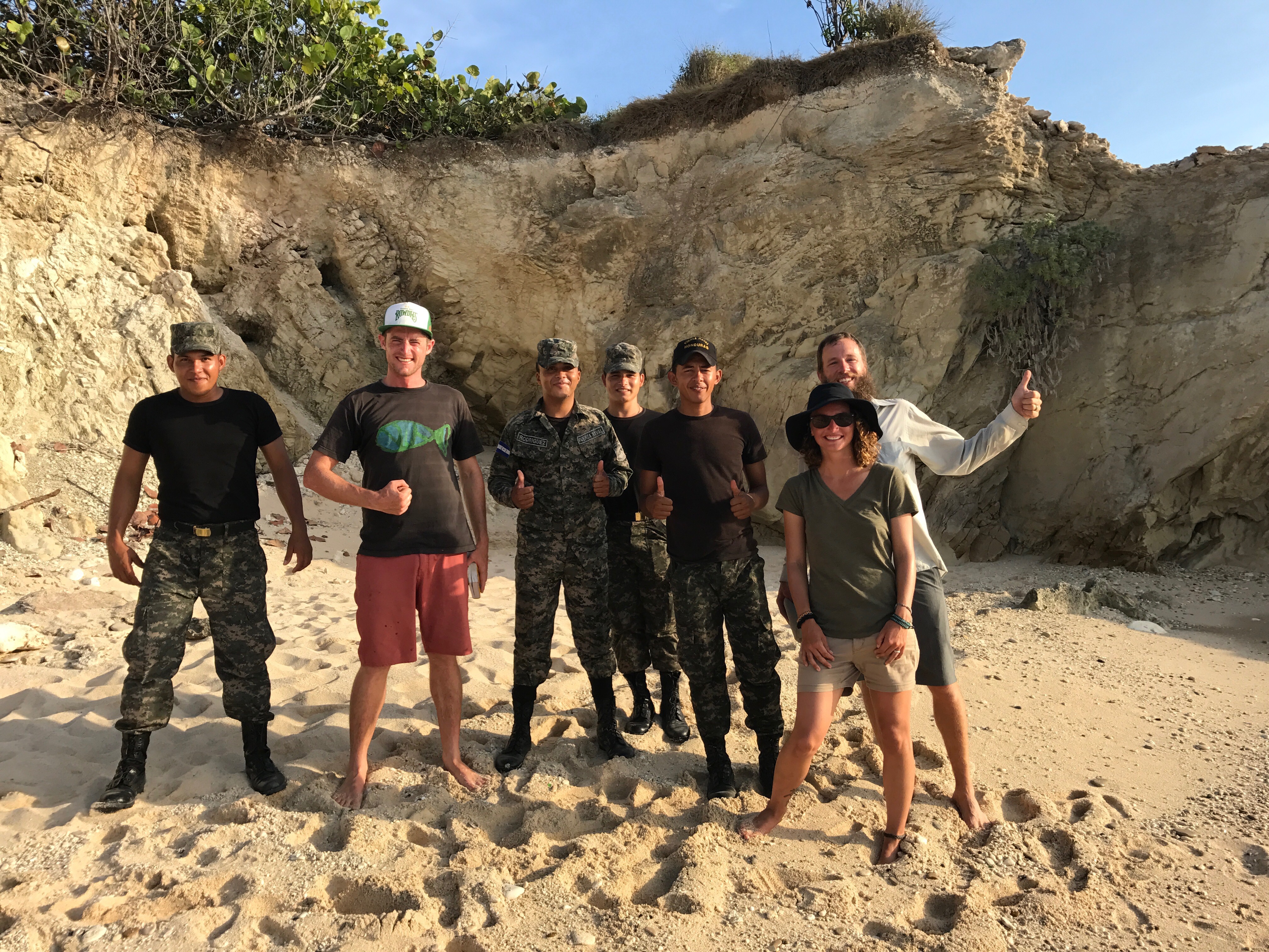 Once back at the dinghy they allowed us to take some pictures together, happily giving thumbs up and taking some of us as well. Before we were about to hop in the dinghy they asked if we had any more cookies or chocolate. Max and Mark rowed back to the boat to get some Easter candy we had left over from my parents and home-made fudge our neighbor at Blind Pass made us. While Max went to get to get more goodies I spent time trying to communicate with some of the guys. They were curious about Florida, where we were heading, if we had kids, and if we would get a hotel in Providencia Columbia. Max arrived with their chocolate and they helped us launch the boat again. Smiling, waving, and laughing we said our goodbyes before heading back to High Climber. I felt so incredibly thankful that they approached us for the olive oil so that we could get to know them and explore the island. Funny to think how scared I was when I saw them lining the shore with guns, and then ended up playing a friendly game of soccer with the same men.