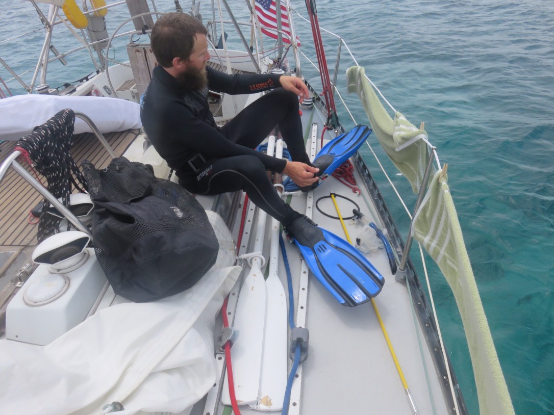Around 1:30am on Tuesday I heard Max yell “land ho!!” Kyle and I were on off watch down below and headed up to the cockpit to take down sail and prepare for the motor into the reef surrounded anchorage. Thank goodness the moon graced us with its presence which made coming into a foreign anchorage in the middle of the night a little less intimidating. What a strange thing it was to arrive at this completely unlit island that seemed to be in the middle of the nowhere in the dark. While the guys cleaned the deck and stowed our various gear I came below and did a quick run through with wipes, the mop, and paper towels attempting to de-salt the wet muggy boat. Sleep came fast as we were all extremely exhausted from the passage.