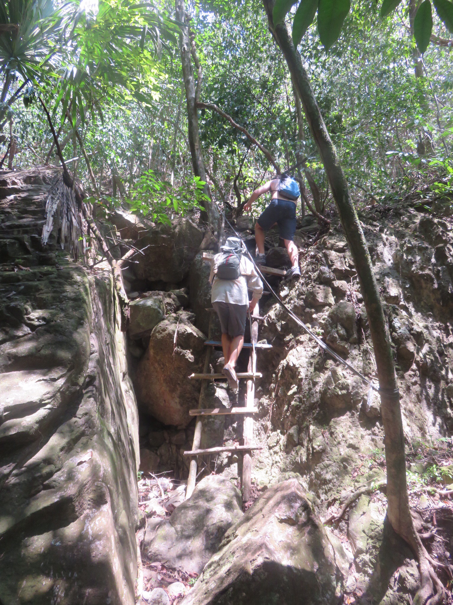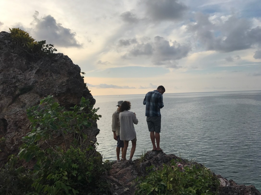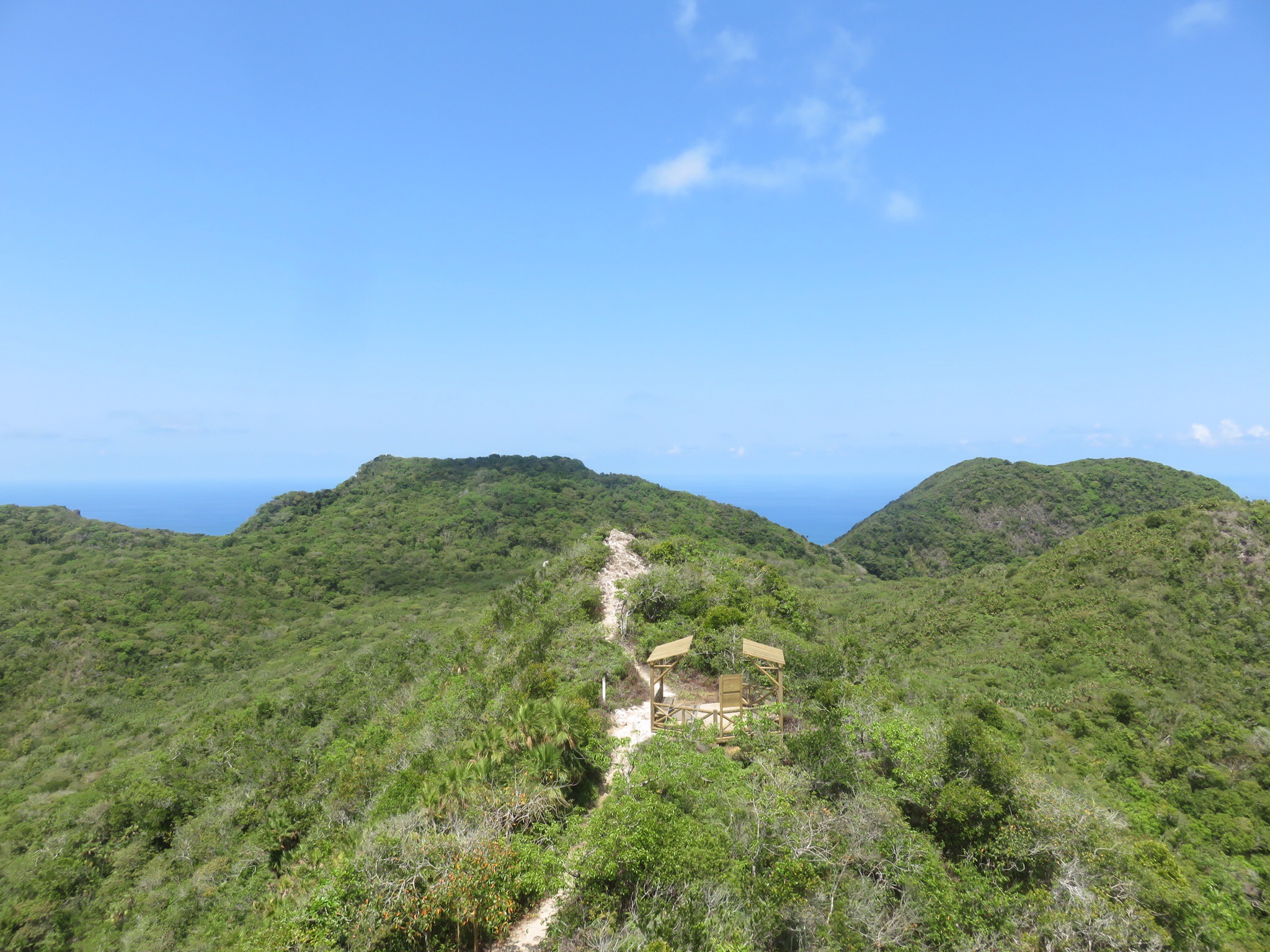 The following day we headed into town in search for a phone, internet, and information on a hotel. It took quite some time to accomplish these things, but with a hotel booked, a phone to call my parents, and some time exploring the Main Street we decided to rent a 4 x 4 golf cart for the afternoon. With Max driving we drove around the entire island, stopping by mine and Kyle’s hotel to check in and get our room key. The golf cart tour turned out to be a great time and we found a hiking trail up a dirt road that led us to the most spectacular views. As we weren’t anticipating a hike like the one we took, I was wearing a dress, the wrong shoes, and didn’t bring water. The climb was extremely steep- ropes lined the trail in order to aid in climbing up. But the moment we arrived at the top the difficulties of climbing up the mountain faded away. A 360 degree view of the entire island and all surrounding islands took my breath away. In fact we could even see the anchorage and make out the spec that was High Climber. Mark and Max took a different trail down while Kyle and I headed back to the golf cart to pick them up at a different trail head. The thought of water caused us to hike really fast and the way down was much quicker and easier than the way up.