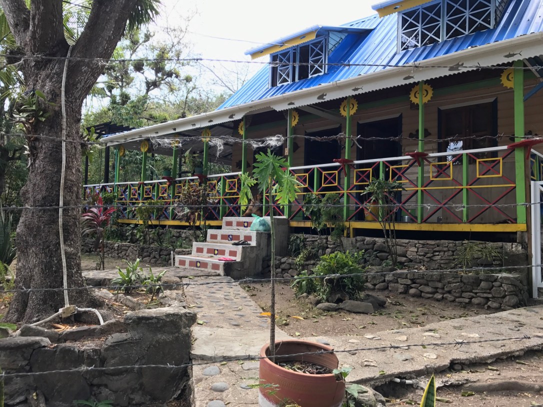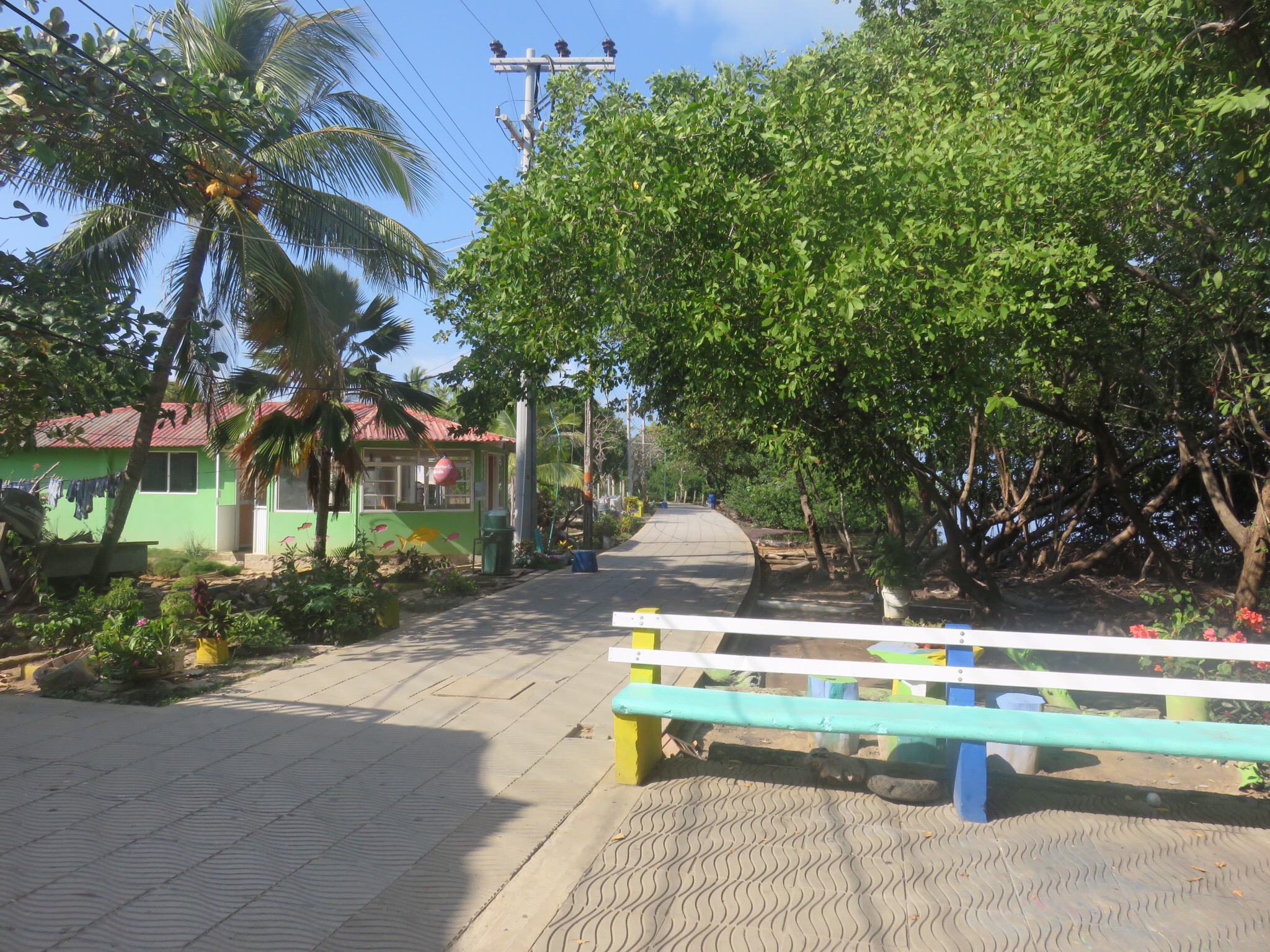 Well Providencia proved to be just as wonderful as I was anticipating! Max rowed to shore at 2pm on Sunday and by 3:30 we were all allowed to head ashore. Quickly packing our backpacks with sunscreen, water, and some money we all 4 carefully climbed into the dinghy while Kyle rowed us to shore. Being that it was a Sunday the Main Street area was rather deserted- but we did find a small shop that sold cold beer and had an ATM. The buildings lining the Main Street were all very colorful and close together. I could tell right away that this place was not heavily influenced by tourism and that was something I was thankful for. Following a foot path across to another island we followed a trail until we arrived at some stairs leading up the mountain. Hiking up the stairs and then following the trail further we found a place on the side of the hill above a beach which offered cold drinks, fried fish, and some hammocks and beach chairs. Hanging out there for a bit Carlos, a local, gave us some information about the island. We climbed the trail past the tiki hut and ended up at a beautiful overlook. Kyle and Max stripped their shirts and instantly jumped off a small cliff into the crystal clear water below.