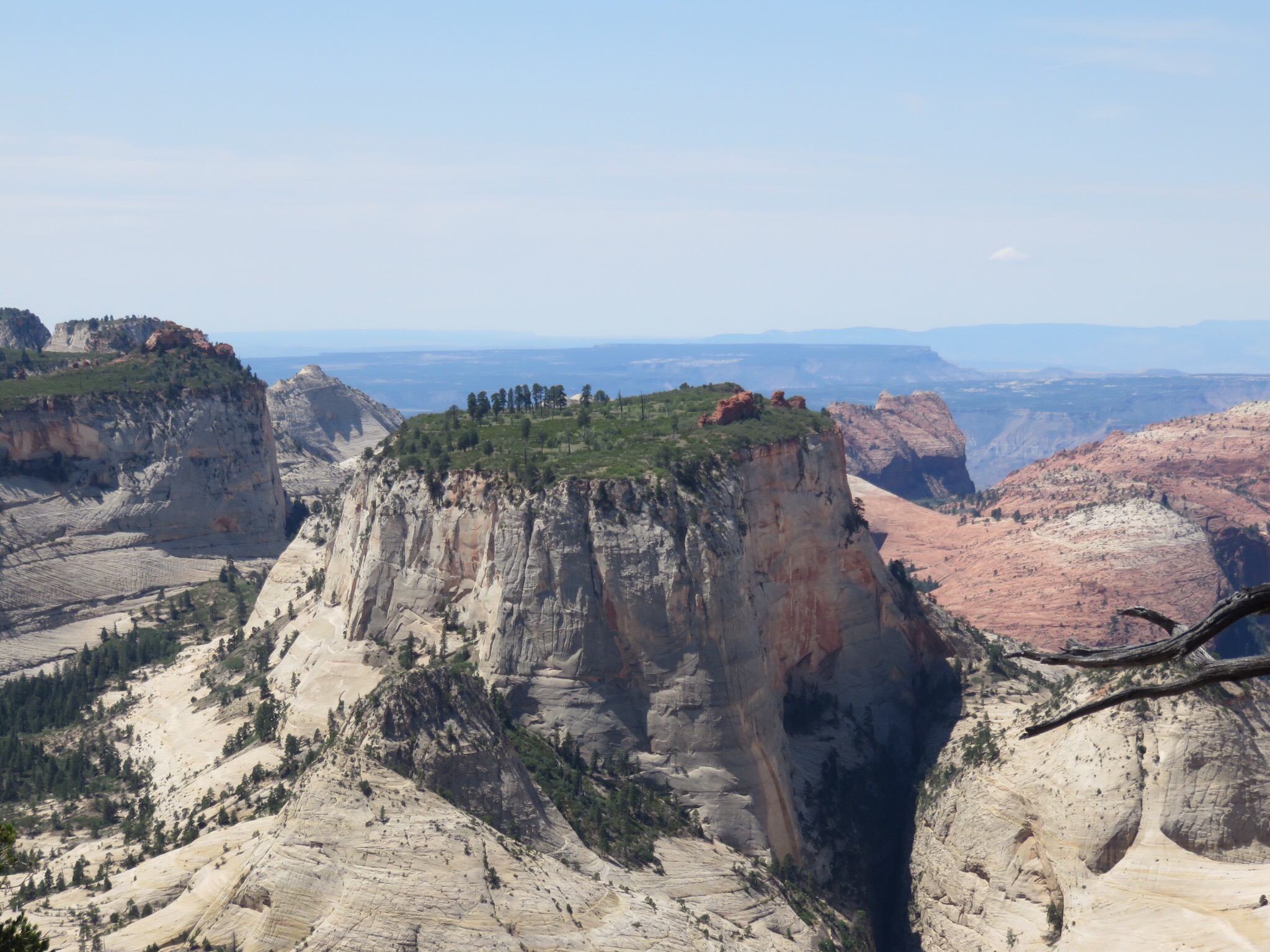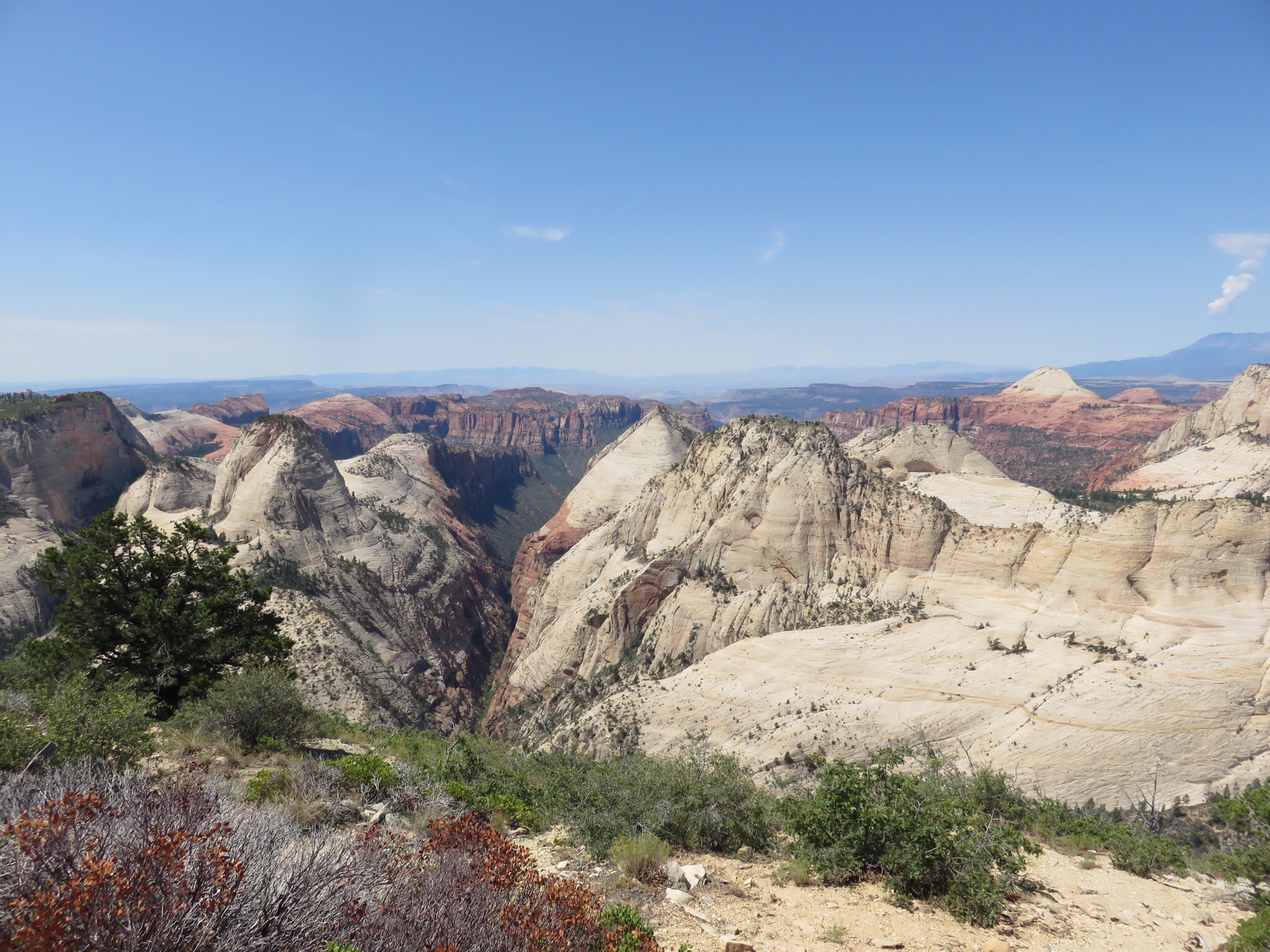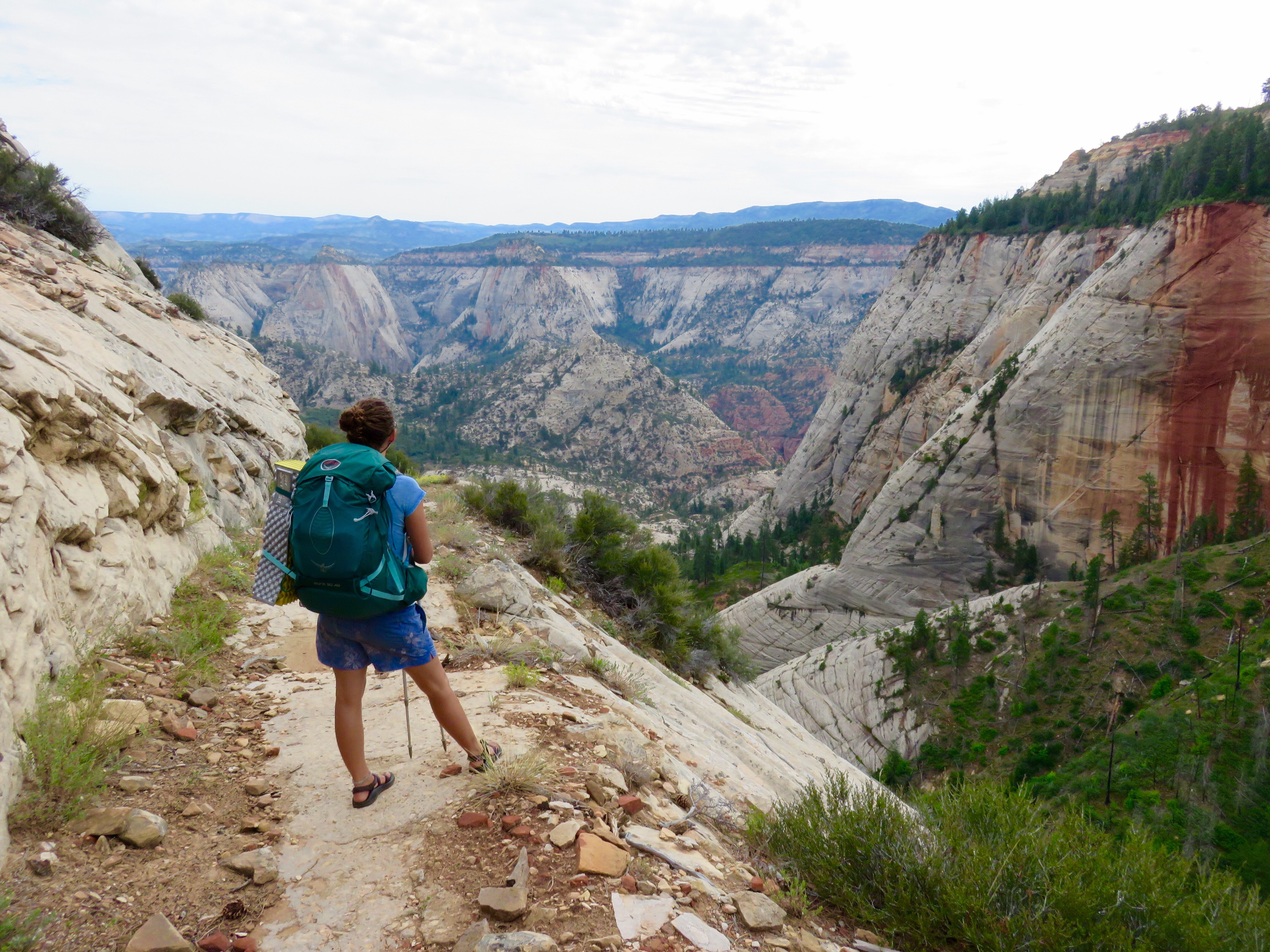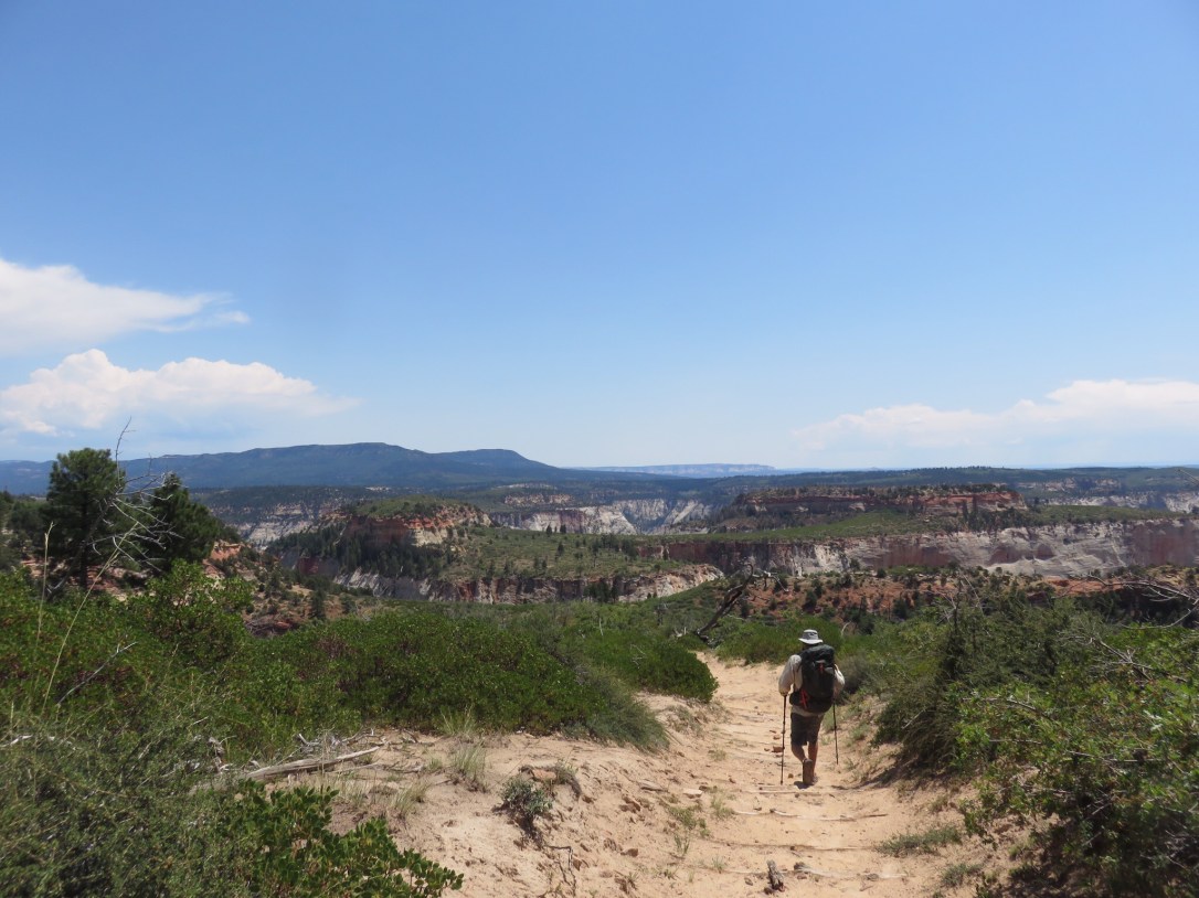 12pm-Having descended into the meadow, we eventually had to head back up to the rim. The hike was tough but in a good way. Sweating under the Utah summer sun, we dug our trekking poles into the dry ground below us to aid us up the mountain. Arriving on the top of a ridge, we found a spot in the shade and enjoyed fresh veggie sandwiches for lunch. The views continued to get better and the temperature continued to get hotter!