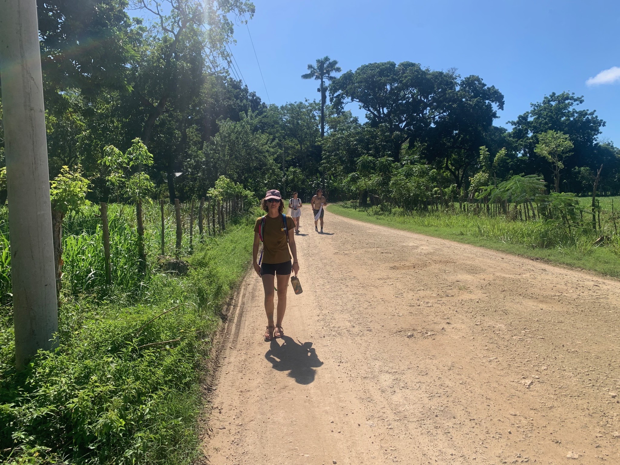 We all slept in that second morning because it was our first night of sleep without the boat moving for a few days. So after a slow morning, we gathered our backpacks, sun screen, and snacks and headed to shore. We didn’t really know where to go but being such a small island, we decided to just head up the street and see what we could find. We quickly saw a sign that said “pumpkin hill this way”. Following that sign, we walked along the road and oohed and ahhed at all the vacant properties that were for sale. Mason is a wealth of knowledge when it comes to fruit, so he was good at spotting different fruit trees and we daydreamed of buying a piece of property on Utila surrounded by fruit trees.