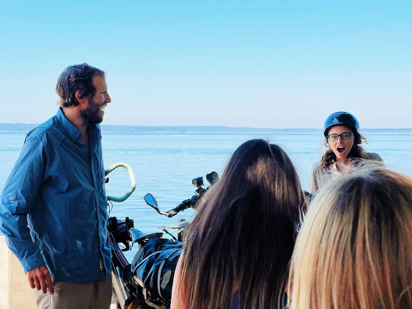 After we broke the ribbon and parked our bikes on the edge of the water, we turned and were greeted by so many smiling and cheering people. And one of these people in particular took my breath away. My childhood best friend of over 15 years was standing there with her sister. 100% unexpected, there was Kiley. She and her sister had driven over 15 hours from Salt Lake and completely surprised both of us. I just could not believe it. I think these pictures indicate that. It was a moment I will cherish forever.
